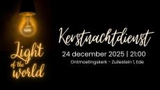 Op 24 december om 21:00 uur bent u van harte welkom, jong en oud, om stil te staan bij het wonder van Jezus die naar de aarde kwam - het licht van de wereld.